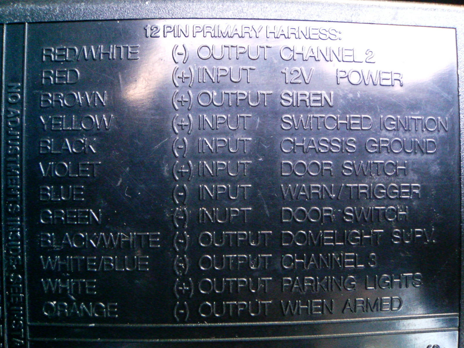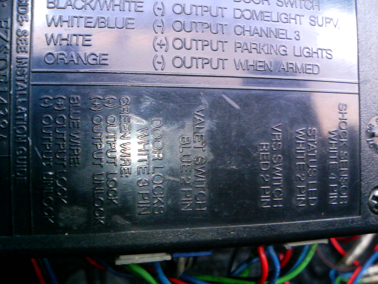 セキュリティー本体から出るその他の配線については下記に簡単に例をまとめましたので参考にしてください。 左の写真はセキュリティー本体の裏側にある配線説明です。 ■OUTPUT PARKING LIGHTS リモコンのアンサーバックと光による警告のため、スモールランプ接続するものです。いままでの車ではオーディオ裏のイルミネーション配線に接続していましたが+12Vを流す配線であり、CANやBSIへの影響を懸念し接続していません。また、ランプ類のリレーがマイナス側であれば接続しても光りません。この配線は警告専用にランプを設置して配線することを考えています。アンサーバックはドアロック連動でハザードが光るので無くても問題ありません。 ■DOMELIGHT セキュリティー解除の際、室内灯を付ける配線です。+12Vを送るのでこれも接続はしていません。307はこの配線を接続しなくてもアンロック時に室内灯が付きます。アンロック時に足元やキーシリンダー周りを照らす照明に使っても面白いでしょう。 ■(-)INPUT DOOR SWITCH■ ドアスイッチ配線は(+)インプット側を使用したので、この配線は不使用です。この配線はアースに落とすだけで警報を鳴らすことができるので、傾斜スイッチなどをつなぐだけでジャッキアップ検知センサーなどが作れますね。他にもリレーのB接点を使って、エアロ盗難防止のループセンサーなども作れると思います。1本の電線を外装品の内側に通しておき、どこかが切れたら警報が鳴るようにすれば良いでしょう。この配線はアイデア次第で色々使えますね。 ■(-)INPUT CAHHNEL3■ エンジンスタータなどのオプションで使うものです。リモコンにある2つのボタンを同時に押した際に、この配線がセキュリティー本体の中でアースに落ちるようになっています。私はセキュリティーをかけずにドアロックのみを操作する為に使用しています。この配線と常時電源の間にリレーのコイルをつなぎ、接点側でドアロックリレーを動かすようにしました。 307SWには純正のキーが2本ついていますがドアロックリモコンはひとつしかありません。リモコン付きのキーを増設するには2万円弱の費用がかかるので、かわりにセキュリティーで同じことができるようにしました。これでスペアーキー+セキュリティーリモコンでキーレスエントリーができます。アンロックの際はセキュリティーをON−OFFと操作すればドアが開きます。 |