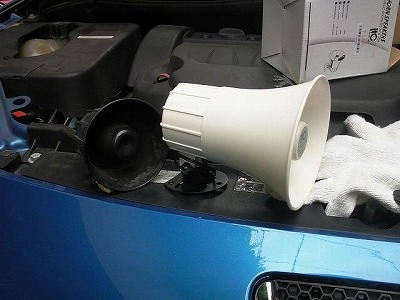 <2011.06.29追記> 長年使っていたボイススピーカが鳴らなくなりました。 ボイスが聞き取りにくくなり、そのうちコポコポという音だけになり、最後は完全に音がでなくなりました。 セキュリティーのボイススピーカは、モジュールごと購入する必要がありますので、代品をさがしました。 見つけたものは、8Ω、10W(MAX20W)のトランペットスピーカです。 セキュリティー付属のスピーカのスペックは分かりませんが、このスピーカで問題なくボイスが鳴っています。 (ボリュームは以前から絞り気味にしており、最大音量では試していません) 写真の通り、セキュリティーに付属のスピーカーと比較すると、かなり大型です。 ラッパの部分をノコでカットして、小さくしてから取り付けました。 このトランペットスピーカは、秋月電子通商のサイトより購入したものです。 |