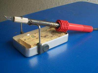 切断にはヒートカッターを使いました。 半田ごての先にナイフが付いているものです。これで樹脂を溶かしながら切断します。 |