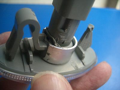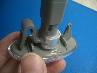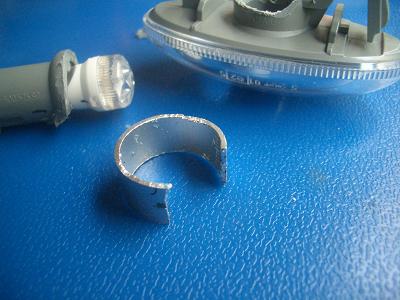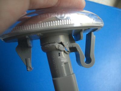 サイドマーカの根元にC字になったアルミパイプをはめて、そこにソケット側をはめたところです。 サイドマーカの根元はΦ17.5mm、アルミパイプ内径はΦ17なのでC字に切るとちょうどはさまります。 この状態で周囲を接着剤で固めます。 |