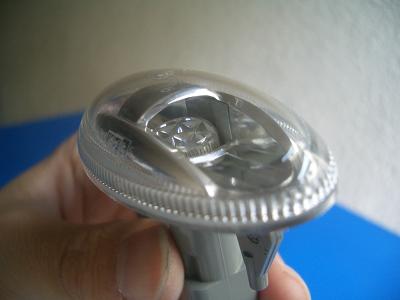 LEDバルブの頭が入るサイズになったら、本体側とソケット側の接合面も平らに削ります。 |