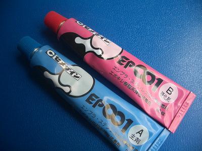 接着剤はエポキシ系接着剤を使いました。 主剤と硬化剤を混ぜるタイプだと、空気と触れていない部分でもしっかり固まることが期待できます。 この接着剤は、40分で動かなくなり、24時間で実用強度になります。 車に使うものなので、耐振動性に優れたものが良いでしょう。 |