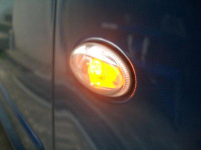 点灯したところです。 昼間でも十分確認できる明るさだと思います。 307はサイドマーカを外してもハイフラにはなりません。よってサイドマーカをLEDにしてもハイフラにはなりませんでした。 |