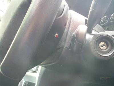 エアバックが付いたらバッテリーのマイナス端子をつなぎます。 つないだ後も4分間待ちます。もちろんドアの開閉も行わないようにしましょう。 4分が経過したら、キーをさしてイグニッションをONにして1分経過を待ちます。 エンジンはかけずに待ちましょう。 万が一、エアバックのコネクタがうまくつながっていない場合はエアバックの警告等が付き、マルチファンクションディスプレーに警告がでます。 その場合は、一度バッテリーの端子を外してハンドルを分解してコネクタをさしなおせば警告は消えます。 左の写真はスイッチ取り付け後の完成写真です。この位置ならハンドルを握っている右手を少し内側に回すと指が届きます。 バネが軽いスイッチなので、ホーンを短くプッ!とならすことも簡単になりました。 |