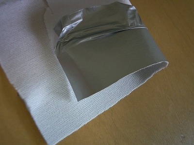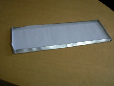 折り目を元に、手で合皮を押さえながらアイロンを当てます。 アイロンは低温で使用します。 合皮の表面はビニールなので、温度が高いと表面がとけたり、貼りついたりします。 アイロンを当てる際は、ハンカチなどで当て布をして行います。 写真はアイロンを当てた後のものです。 |