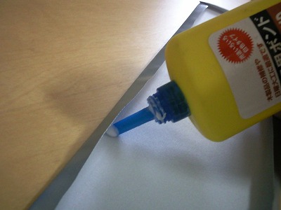 接着剤が塗れたら乾燥するまでの間、本などでおもしをしておきます。 |