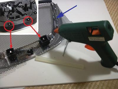 ホットボンドでツメと金網を固定した部分の拡大写真です。 |