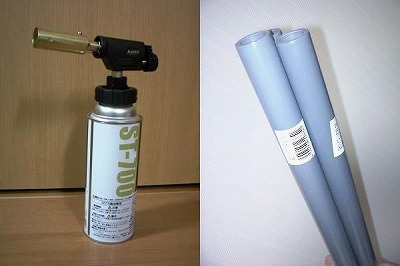 ■続編 2作目製作■ 2010.09.24追記 最初に製作したスポイラーは、硬化中のゆがみでボトムラインが波打っていたので、再製作を検討しました。 今度は心材を硬くて歪みにくいものにしようと考えた結果、塩ビパイプを使うことにしました。 配水用の塩ビパイプを、トーチの火であぶり、やわらかくなったところで型に押し当てて曲げるというものです。 塩ビパイプもガスボンベ式のトーチも、ホームセンターで購入しました。 塩ビパイプは1mで一本148円だったので、パイプ曲げの練習用も含めて数本購入しました。 |