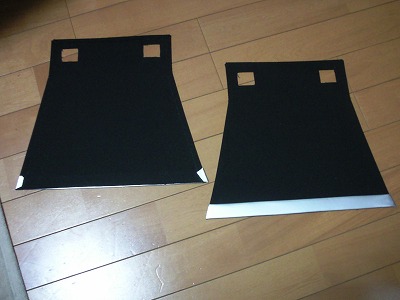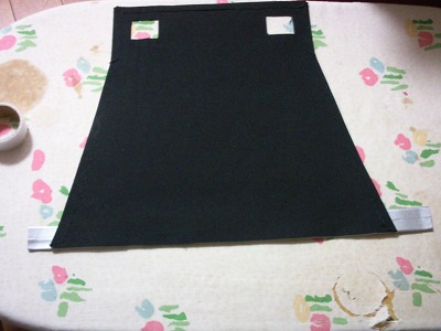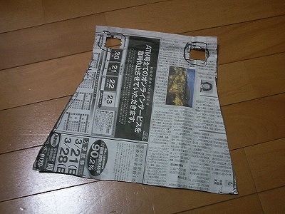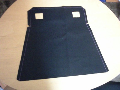次に、シートエプロン本体部分の型紙を作ります。 新聞紙をシートに当て、上からマジックでなぞりながら型取りをしました。 (型取り作業の写真はありませんが。。。) |