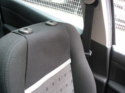 フロントシートのヘッドレストを外し、シートエプロンの穴にヘッドレストのベースを通します。 前後左右の位置を調整して、ヘッドレストを戻せば完成です。 |