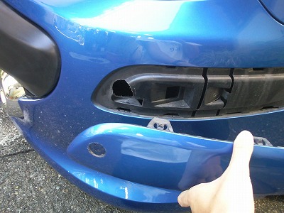 さらにバンパーのモールを外すと作業が楽になります。 モールはバンパーに差し込んであるだけなので、引っ張ると外すことが出来ます。 |
