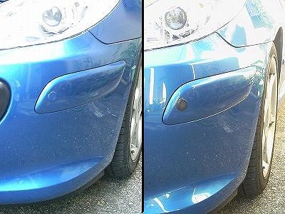 外したセンサーは、表面の汚れを落とし、バンパープライマー → ボディー色の塗料 → クリアー の純に塗装を重ねます。 |