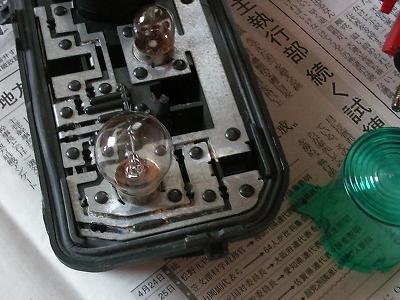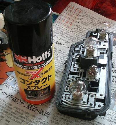 腐食を取り除く前に、いちど車に装着してみたのですが、テールランプが点かなくなりました。 たたくと点くようになったので、接触不良のようです。 接点復活剤を使って、ソケットの金属部分を磨いておきました。 とくにバルブと接触する部分は良く磨きました。 それでも車に取り付けた際には接触不良が再発し、テールランプが点きませんでした。 たたくと点いたので、いまのところそのままにしています。 (金属部分をもっと磨くべきですね・・・) |
