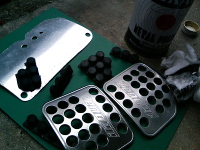余談です。 今回使用したアルミペダルは、固定に使用しない穴に、ゴム製の滑り止めが付けられるようになっています。 取り付け前にペダルの裏側にはめ込むものですが、取り付け方法や厚みの関係で、ブレーキ側には使用しましたが、アクセル側には使用しませんでした。 また、このペダルは前車WISHに付けていた中古パーツです。中古のアルミペダルを使う際は、取り付け前にピカールなどで磨くとキレイになります。 |