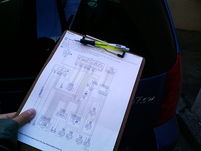 307SWの純正スピーカはツイータ付きの2WAYです。どこかに簡単なフィルター回路があるはずですが、配線図には出てきません。
