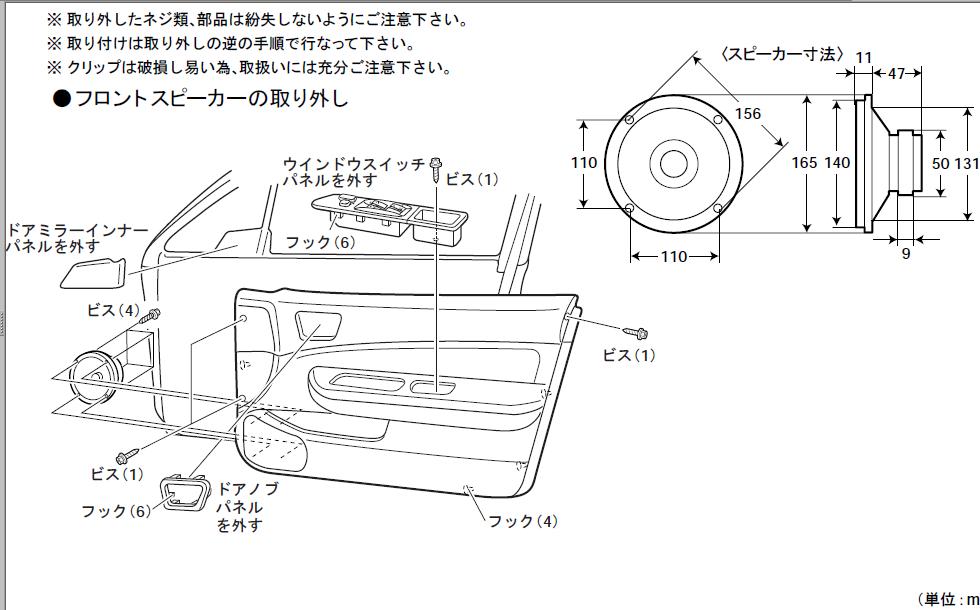 社外品スピーカ取付のDIYとして参考にしてください。