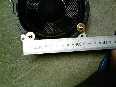 純正スピーカの固定は4点で、ピッチ110mm、対角156mmです。今回取り付けるスピーカはそれよりも小さいので、純正位置に合わせる為の金具を作ることにしました。